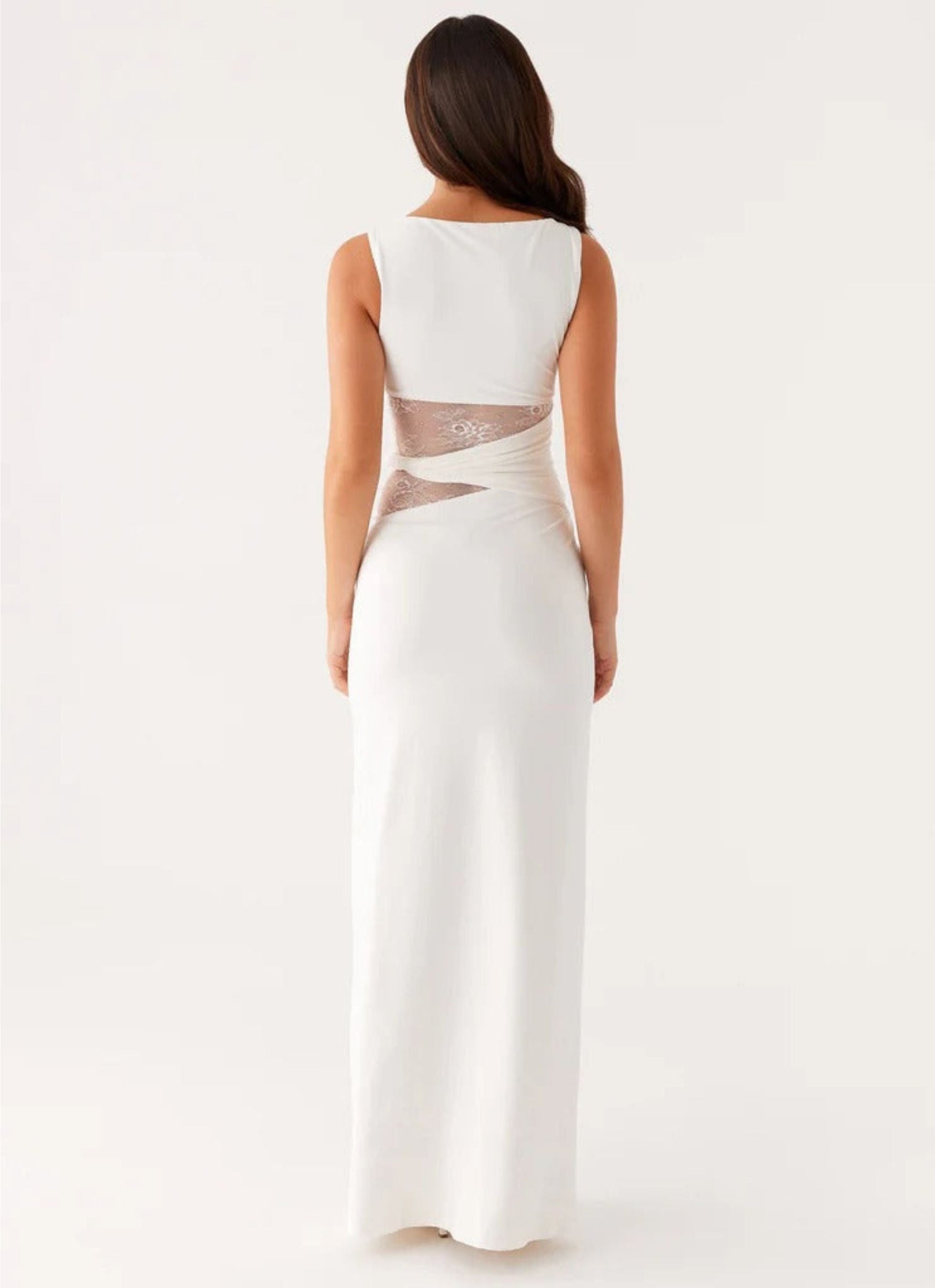 Meet the Luna Maxi Dress, designed for women who value refined sophistication with a modern edge. Its standout is the sculpting silhouette with delicate lace cut-out detailing at the waist adding subtle allure while maintaining a polished, elegant look.