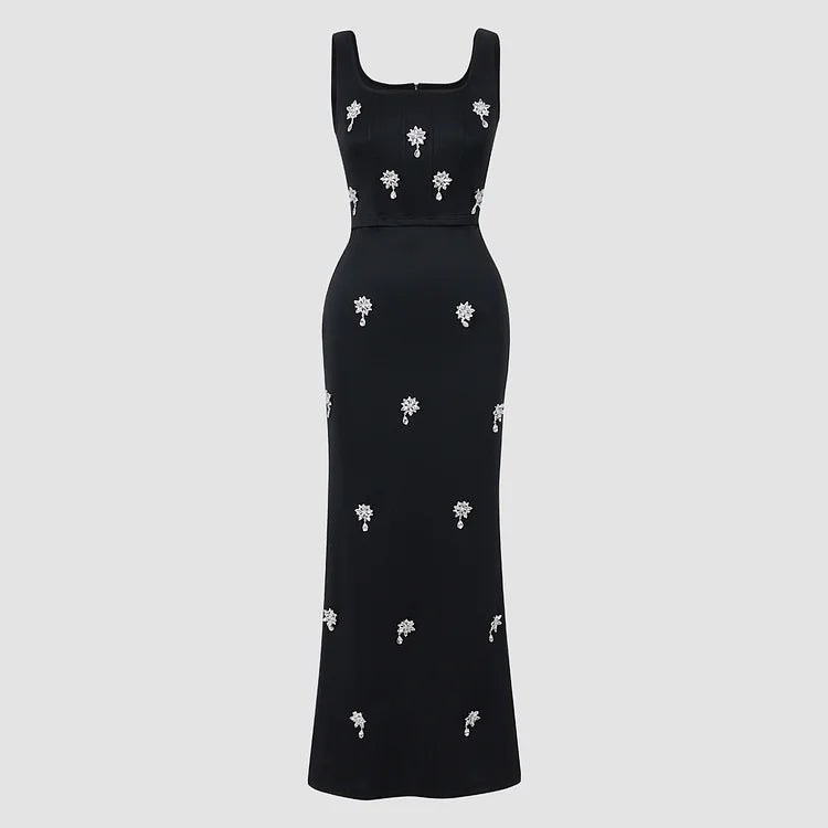 The Elowen Two-Piece Set redefines modern elegance with effortless sophistication. Its the seamless coordination of a sculpted top and flowing maxi skirt, delicately adorned with refined crystal embellishments that catch the light without overpowering the look.